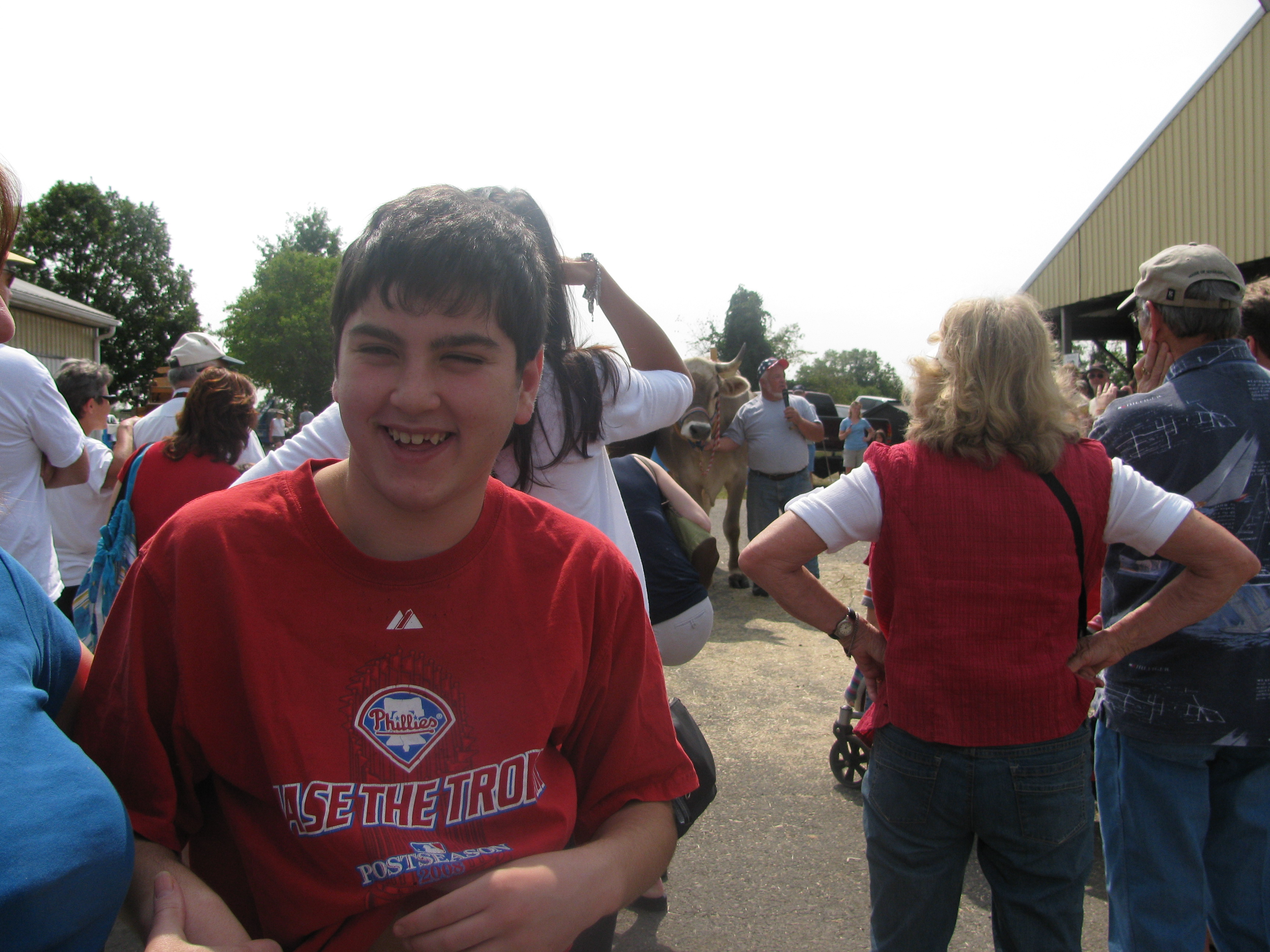 Knowing how much he took to the animals at camp, we figured he might enjoy a trip to the annual Grange fair near us this past weekend. When my wife asked if he wanted to go, she got a one word response on the keyboard, “Excited.”