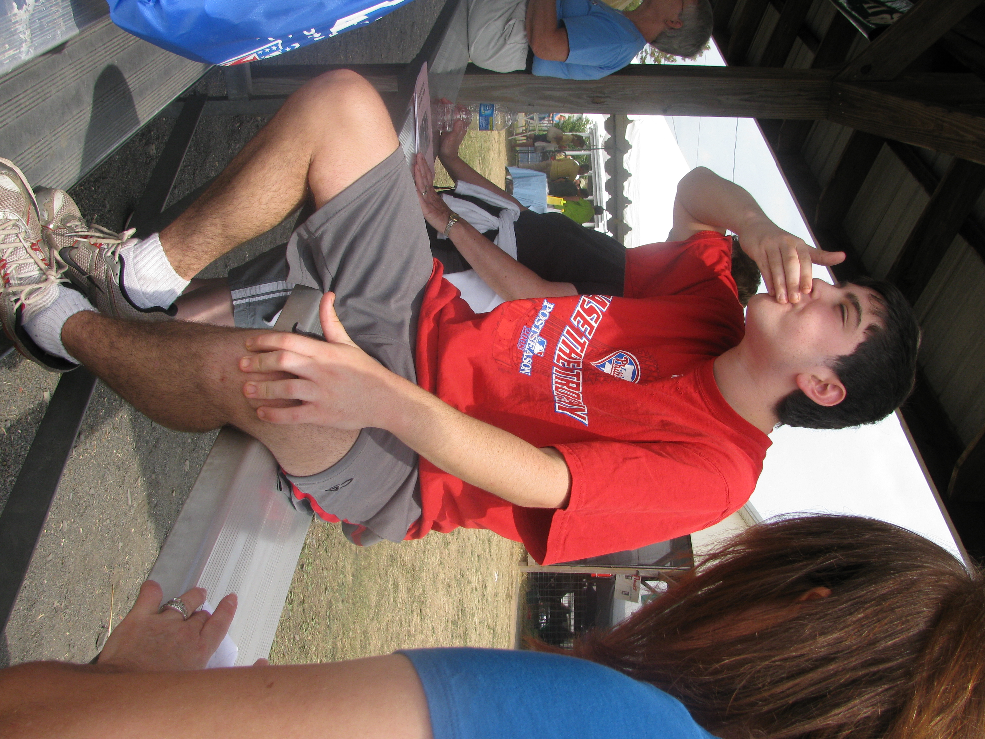Next stop was the arena where 4-H kids were showing off their prize cows. Clay found this amusing.