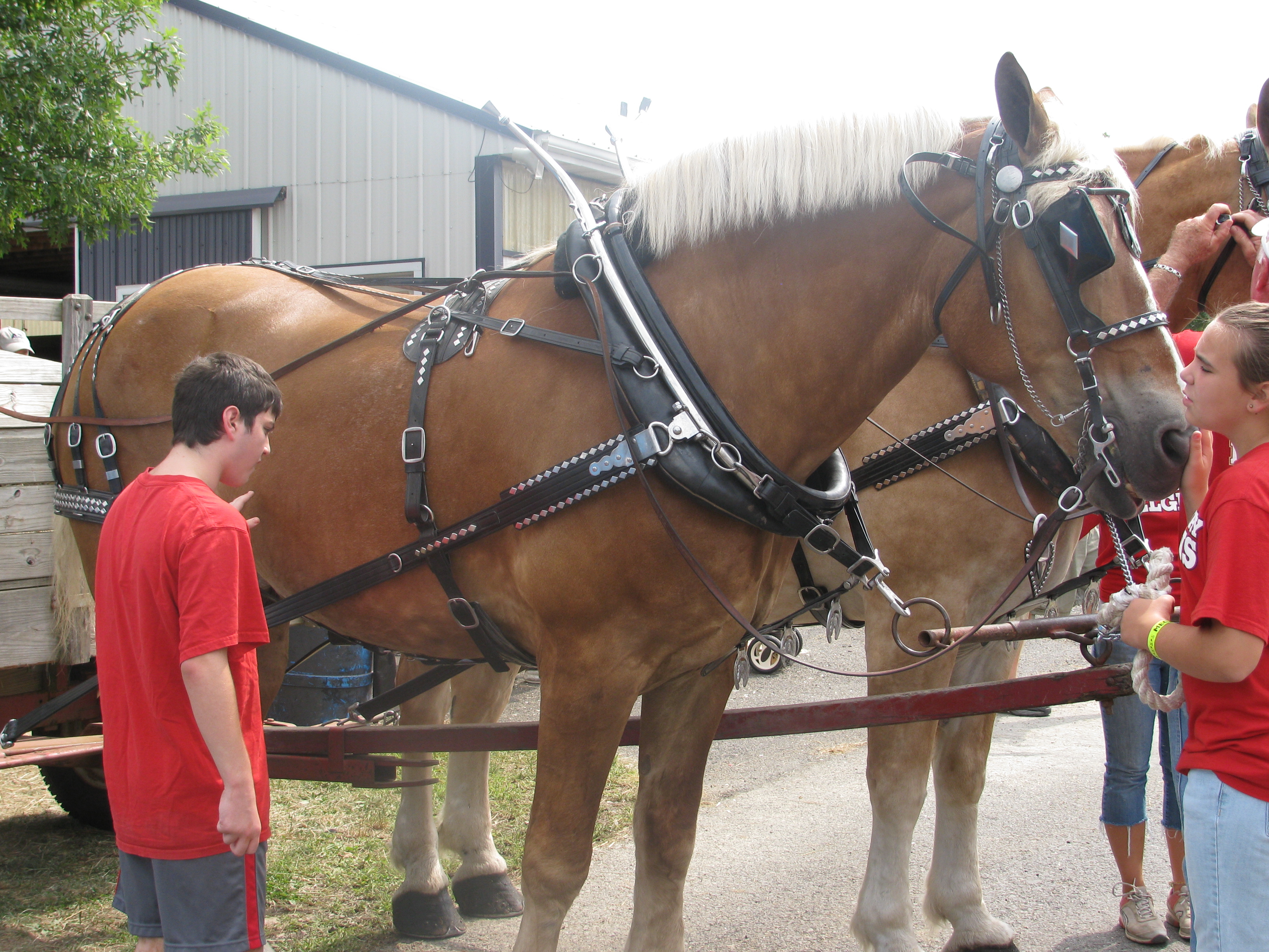 On the way to lunch, Clay spotted a huge Belgian horse.