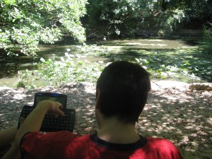 After circling the water, we stopped at a bench to hear Clay’s thoughts.