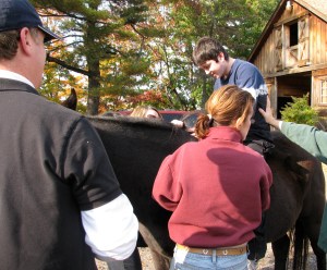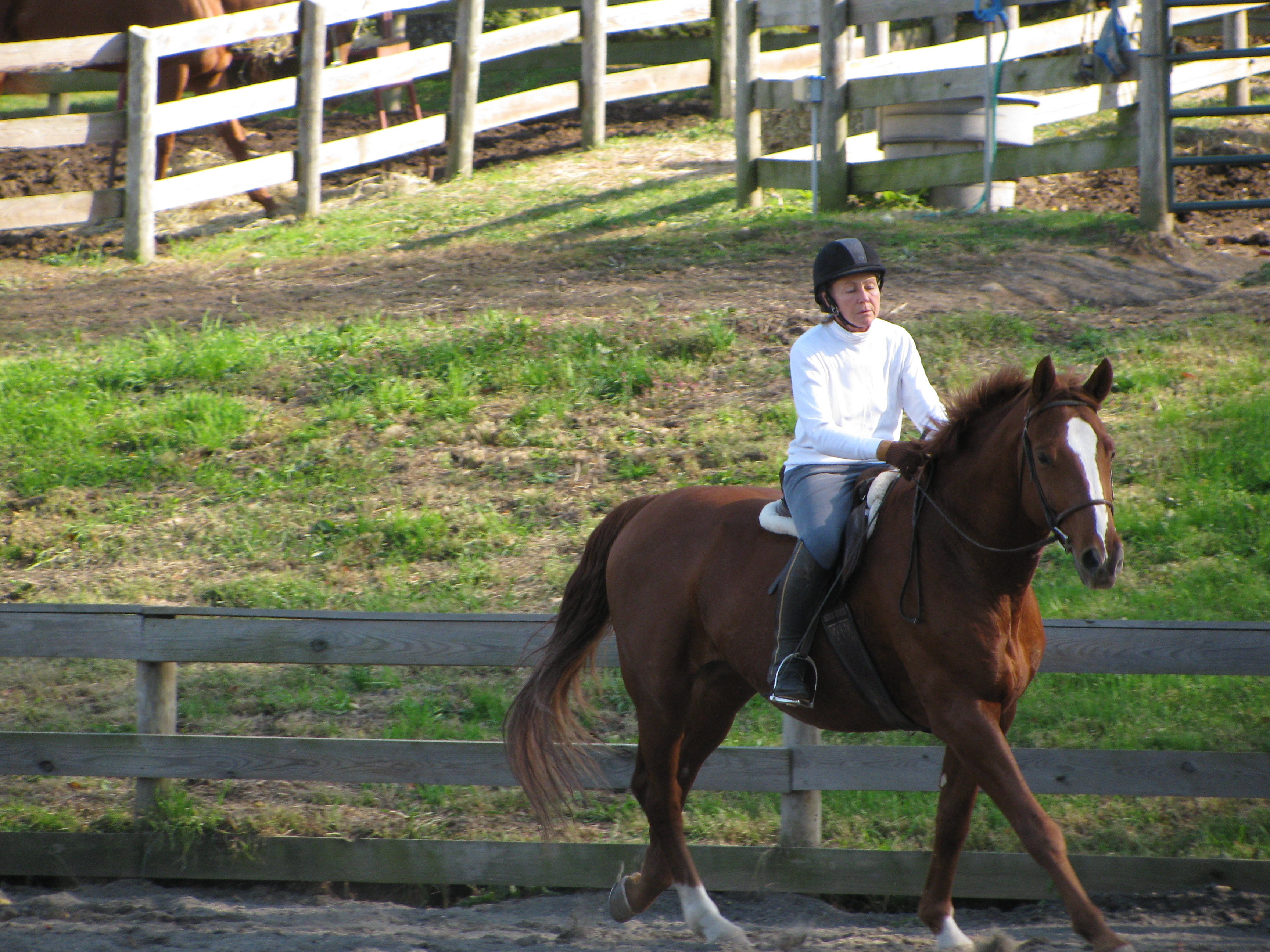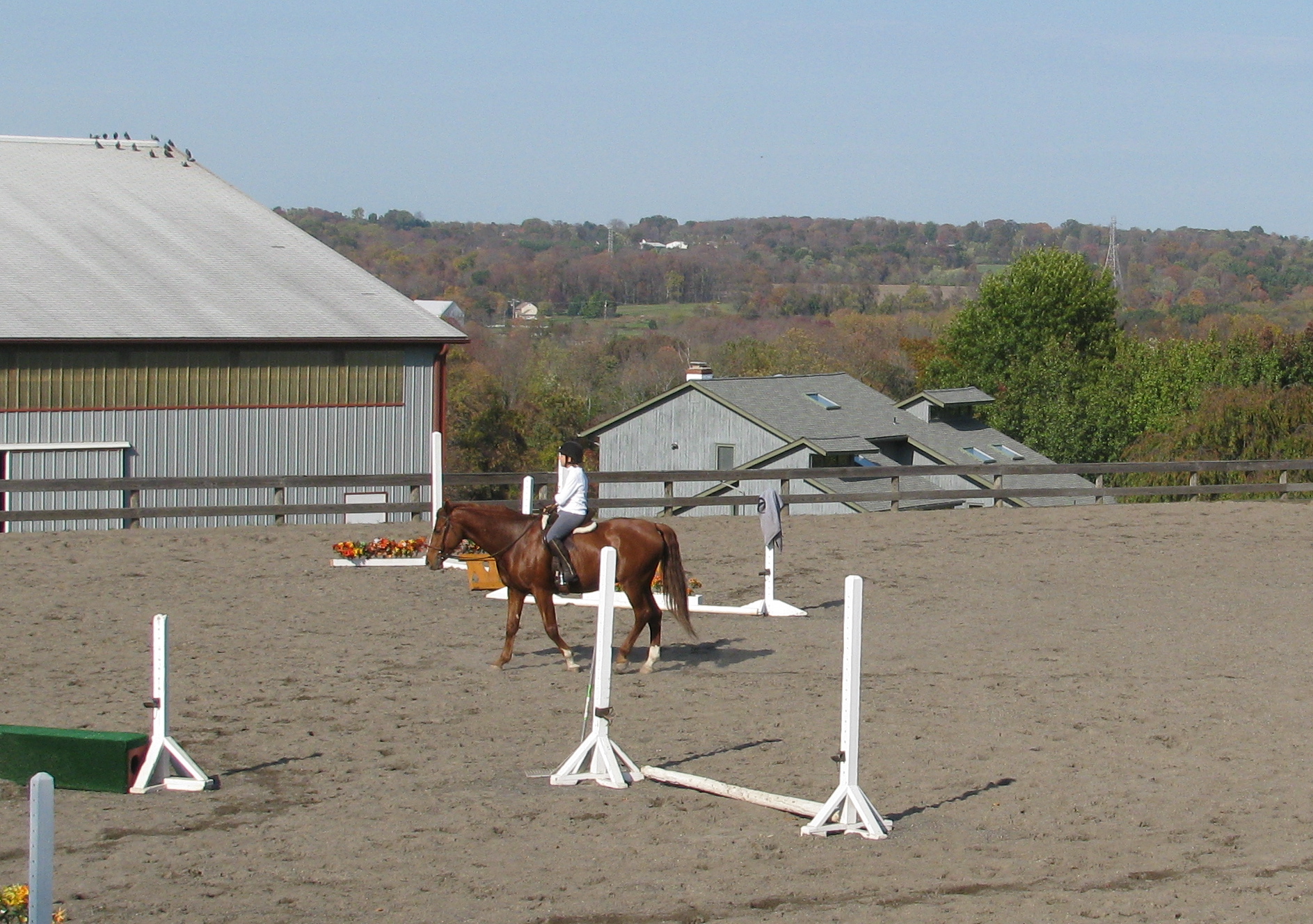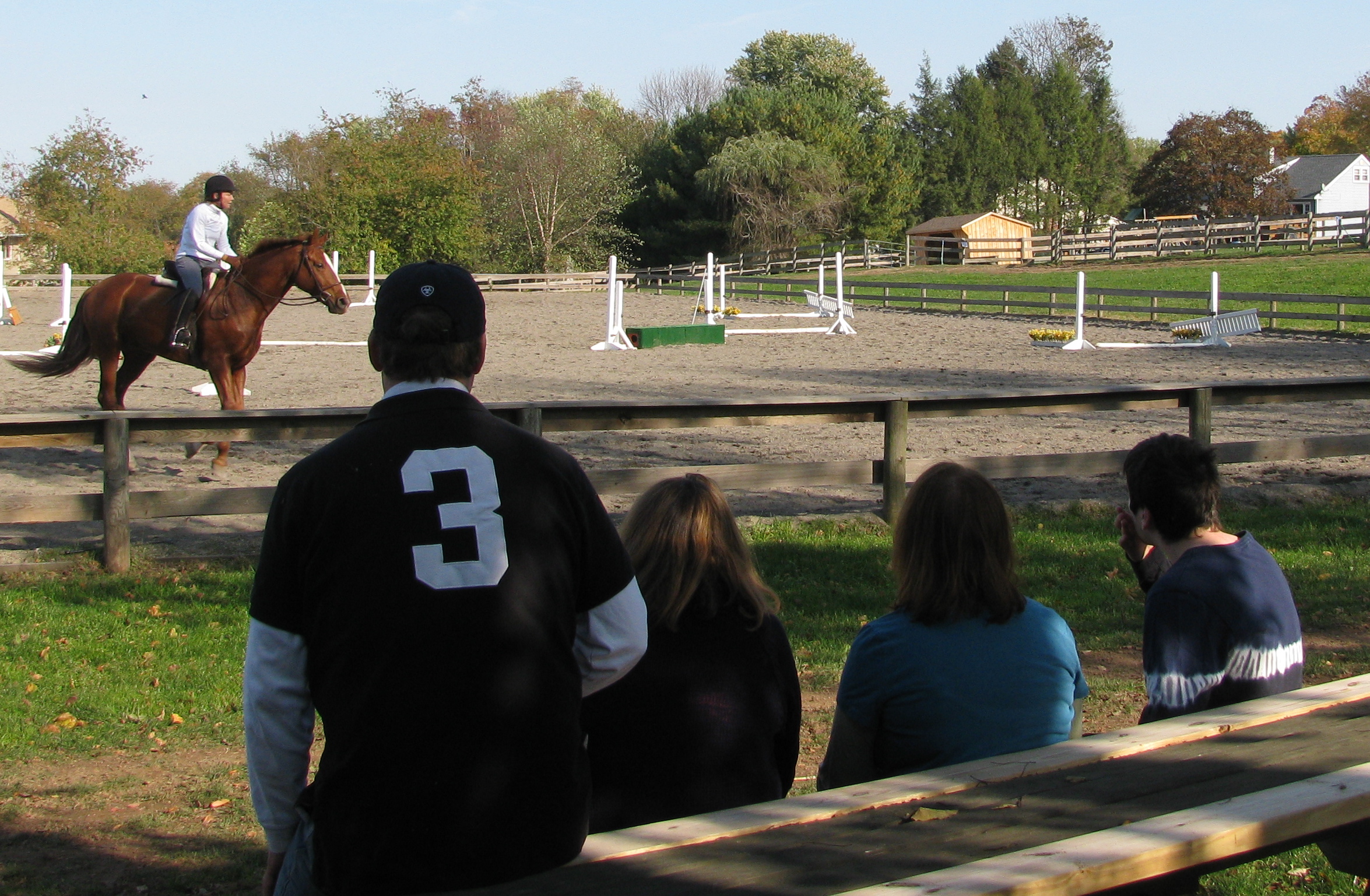 My wife, Clay, the couple that own the horse farm and I wandered out to watch a woman work with her horse in the practice area.