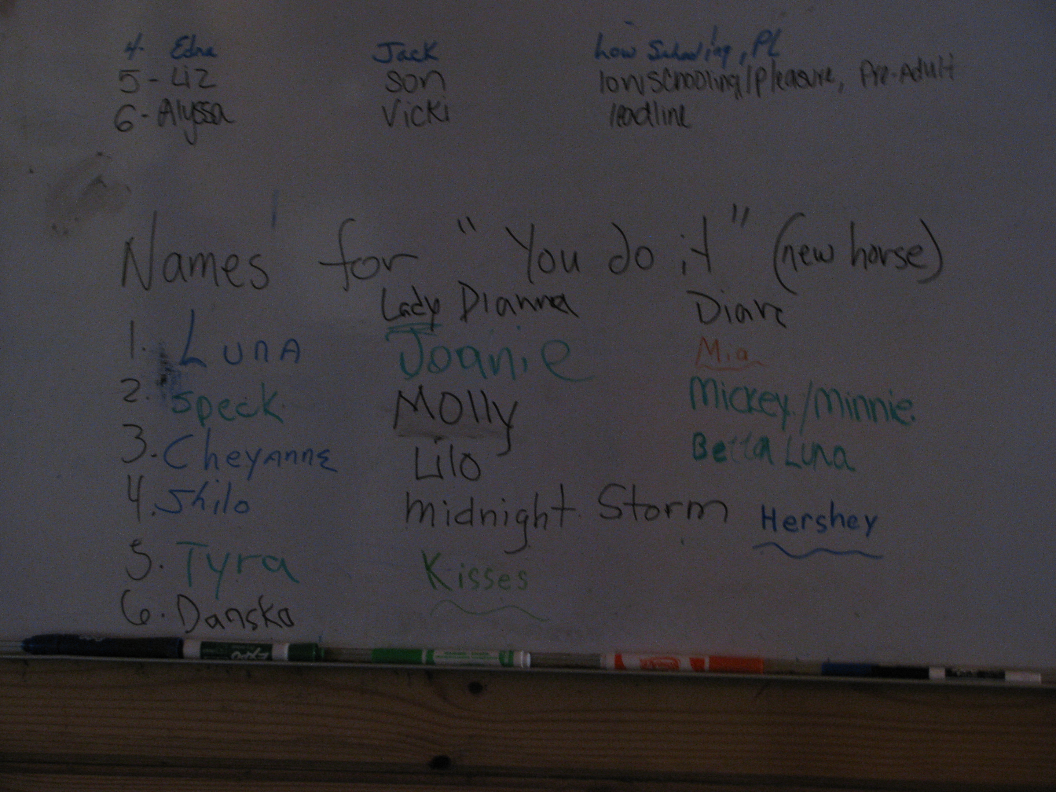 Using his keyboard, Clay offered the name “Diane,” which was promptly added to the suggestion board.