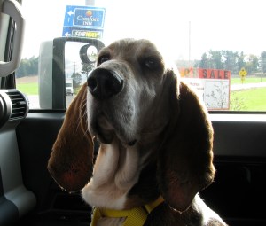 On Friday, shortly after I came up the walk with Miles on a leash, nose skimming the ground in true basset hound fashion, Clay typed, “short and cute” for the sitter who works with him several afternoons each week.