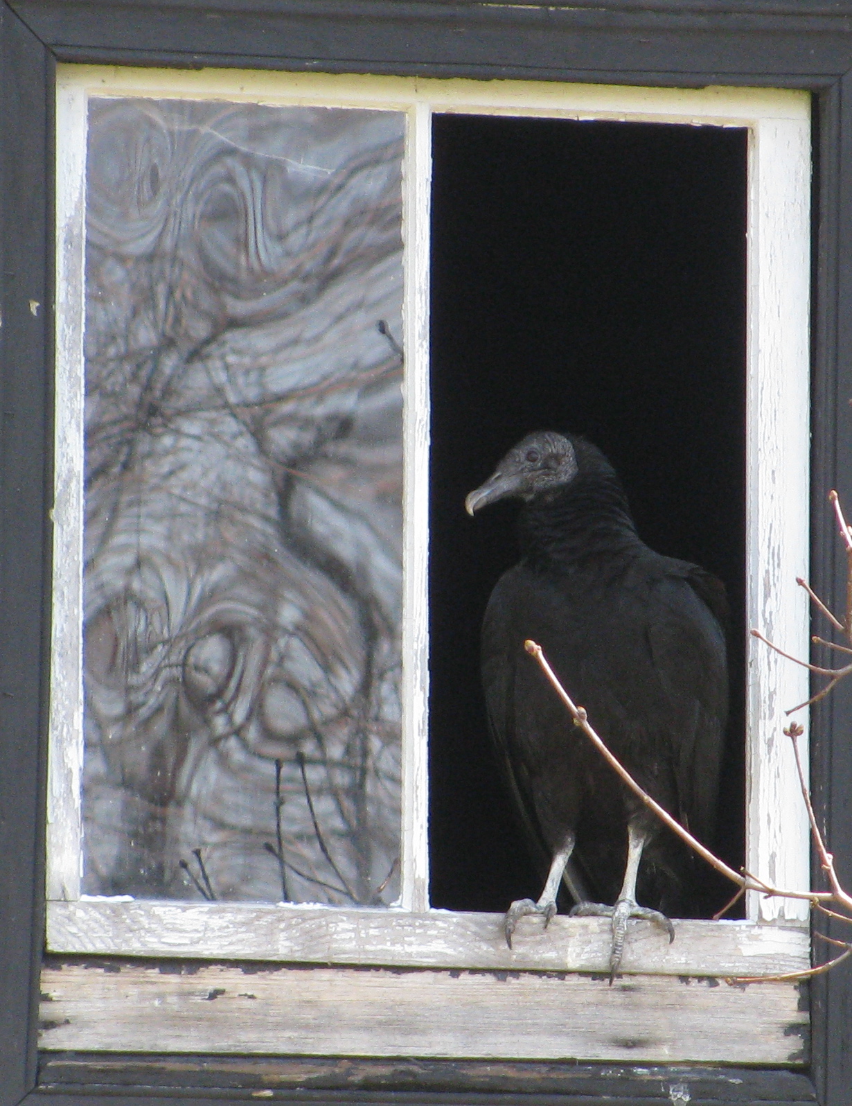 I looked up, fully expecting to see the National Guard landing on the patio. Instead, I caught sight of the largest bird I’ve ever seen sitting on our chimney. A moment later, I heard the noise again and watched a second one come out of our garage window to join its friend.