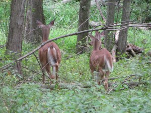 After awhile Clay’s chant of “Gertrude McFuzz” grew in volume and the time for sitting was over. We headed back to our car. Near the end of the trail that leads to the parking lot, three deer ran across the field about 15 feet from us.
