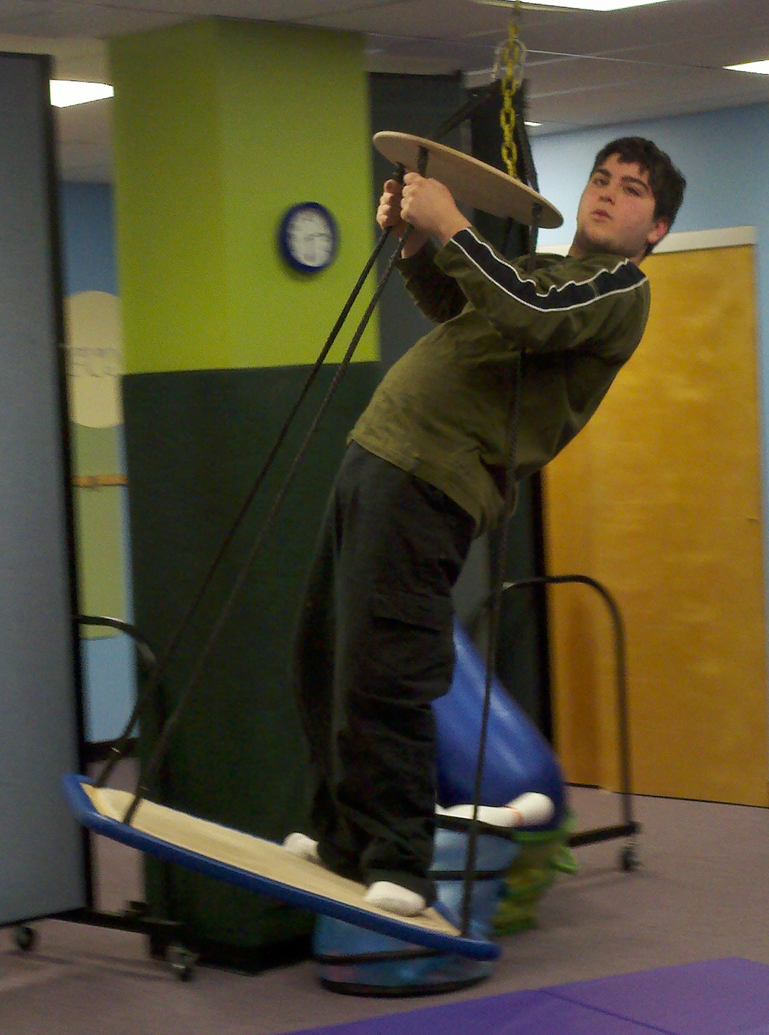 We started, as usual, with a few minutes in the play area to get the kinks out following a two-hour drive. Then Clay headed into the work room, where he spent most of the session typing one statement. He started with this, as Lisa blocked him against the wall to type: