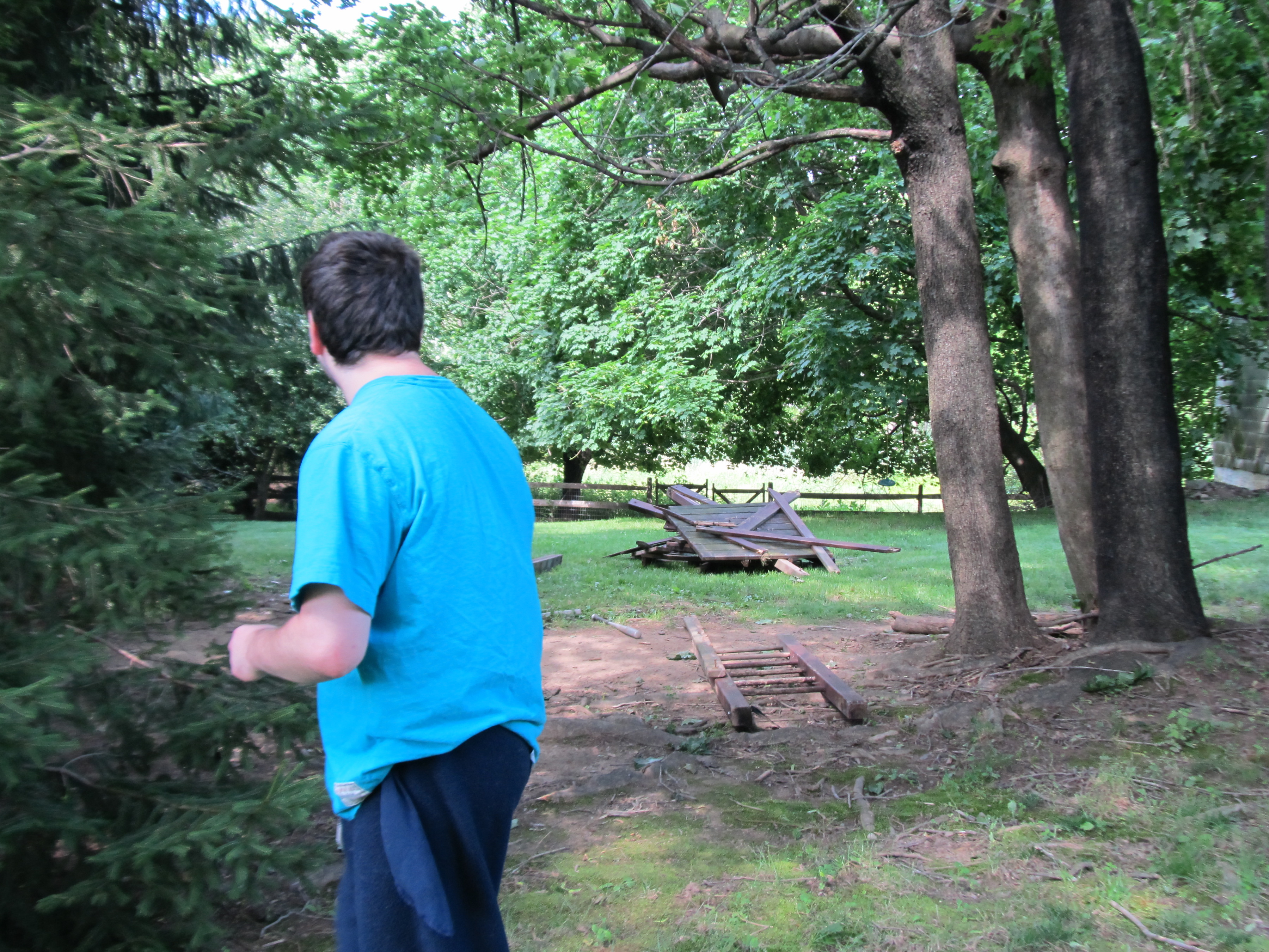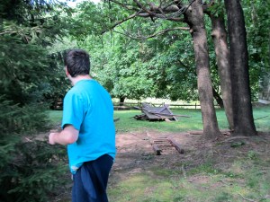 Clay came out to investigate while we were removing the swing set (walking away with the hammer) and to inspect the grounds afterwards.