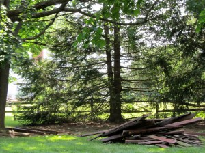 Needless to say, we quickly decided the swing set had become a safety hazard. It was 25-years-old. Full of memories. We inherited it from my brother when his kids grew out of it. I spent a long weekend a few years back disassembling at his house, hauling it home and reassembling it at ours, adding a fresh coat of stain. Clay swings with gusto, and he pushed that swing beyond its normal capacity for a lot of years. At times, the whole set would rock with him. My older son spent many evenings sitting on the swing in the dark, listening to music on his headphones, enjoying the oasis away from the chaos in the house. But, lately, it was leaning to the right and moaned loudly when anyone used it. A tired, old friend with aching bones.